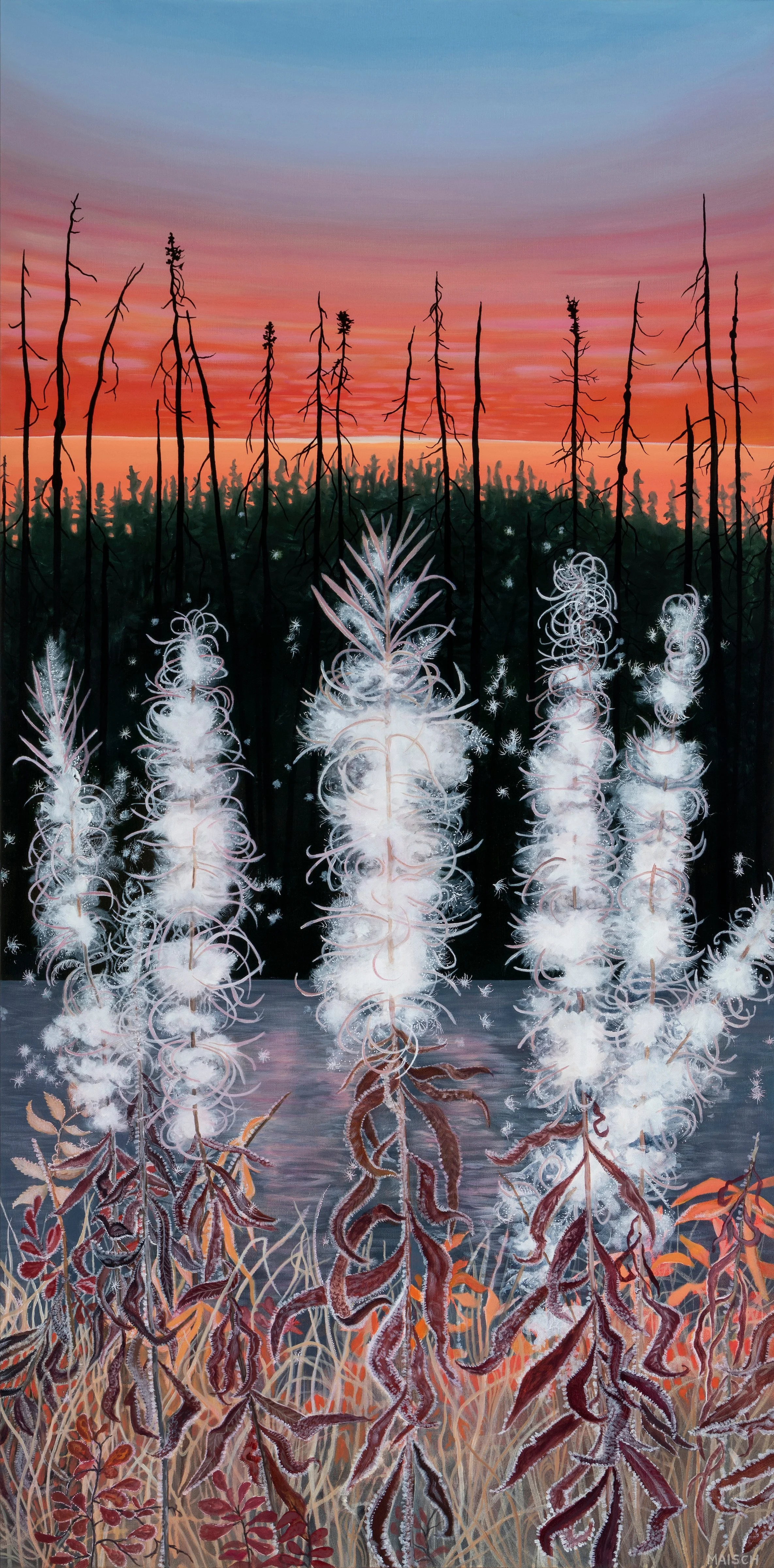 Change churns, blending one storyline with another. Ice storms toss branches to earth. Summer’s flames open spruce cones whose seeds scatter, settle, and root in burnt soil. Succession of the forest pulses a primordial rhythm of decay and renewal. Pollinators buzz to the melody of a warming wind. Fireweed nods while spruce beetles thrum. Woodsmoke stings eyes. Shoots of young green rise from charred ground.